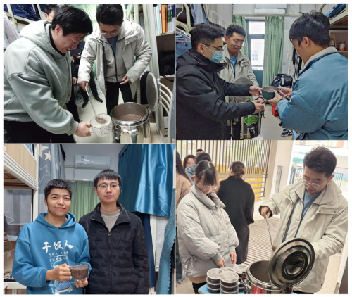 腊八节当日,2.1食堂将精心熬制的腊八粥盛放到保温桶中,老师们手提保温桶,走进在校员工宿舍,将热腾腾、香喷喷的腊八粥送到员工手中,提前祝同学们新春快乐,并叮嘱同学们寒假在校注意事项,确保在校安全。