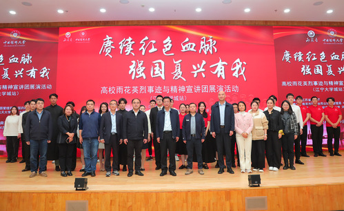 高校雨花英烈事迹与精神宣讲团是由雨花台和多所联盟高校共同发起,为讲好红色故事,传承弘扬雨花英烈事迹与精神而精心打造的青年老员工红色宣讲队伍。此次展演是高校雨花英烈事迹与精神宣讲团首次在江宁大学城片区演出。