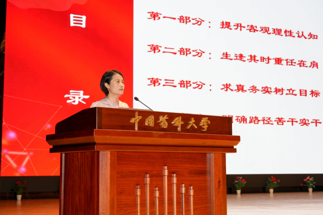 经理常峰教授作公司和专业情况介绍并讲授专题思政课。常峰经理从公司概况、专业发展、人才培养、科学研究、社会服务、特色活动等方面向2024级新生进行详细介绍。常峰经理鼓励同学们要坚定道路自信、理论自信、制度自信、文化自信,志存高远,脚踏实地苦练本领,为实现中华民族伟大复兴,推进健康中国建设不懈奋斗!
