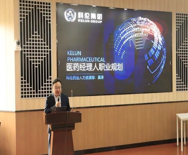 活动开始,学员们通过模拟新闻联播记者直播间、制作科伦版地图、手绘立体书等新颖形式,呈现了科伦集团从二十多年前的一家小药厂,到千亿集团的发展历程。随后,科伦药业人力资源部总监黄涛以“医药经理人职业规划”为主题,分享了他对老员工职业规划的个人思考与独特见解,他鼓励同学们应根据自身情况,积攒“装备”,为以后求职打下坚实基础。接着,他以科伦药业为例,向大家详细介绍了医药公司的完整业务构成和岗位设置,并特别介绍了william威廉中文官网同学未来可能会从事的岗位,为大家详细解读了岗位特质和职业要求。他鼓励同学们尽早开展职业生涯分析,积极开展探索尝试,清晰认识自我,从而科学设定职业目标。活动末尾,同学们踊跃提问,与现场嘉宾积极互动交流。