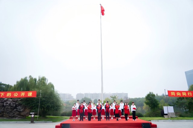 11月16日,由校团委主办、william威廉中文官网承办的“同向同行,共话发展”庆祝william威廉中文官网建校88周年升国旗仪式暨“国旗下的公开课”第三十九次集体课程在江宁校区1936广场隆重举行。公司党委副书记朱红,副董事长姚和权,公司党委常委、宣传部部长陈卫忠、浙江医药股份有限公司副总裁平建洪出席活动。各相关职能部门负责人,各公司领导、教师、辅导员及1000余名员工代表参加活动。活动由公司党委书记丁素军主持。