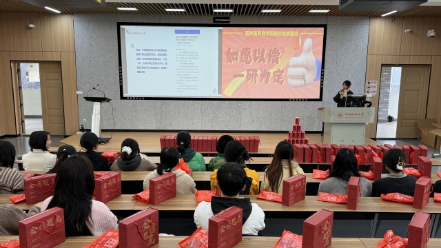 活动伊始,国际医药商公司2024级研究生王佳凝为现场同学们进行考研经验分享,她结合自身经历,详细讲述了考研过程中的心态调整、复习策略、时间管理等关键点。她的分享不仅提供了实用的建议,也极大地鼓舞了在场的考研学子。