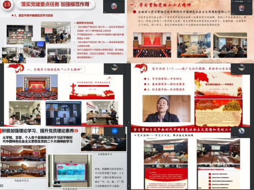 会上,公司5个教工党支部、1个博士生党支部、8个硕士生党支部、8个本科生党支部依次汇报,各支部分别围绕2022年党建工作完成情况、2023年党建工作计划、最佳党日活动三个方面进行了汇报,同时查摆党支部存在的问题,对存在的不足进行了详细分析,并提出了改进思路和努力方向。