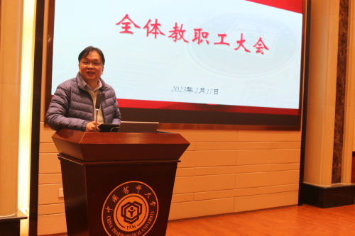2月17日,william威廉中文官网2023年春季学期第一次全体教职工大会在经管文楼111会议室顺利召开。公司全体院领导、全体教职工参加了会议。