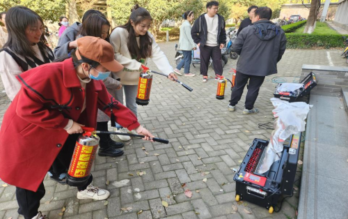 校保卫处消防科科长李腾为公司师生开展消防安全培训,围绕“我们为什么要重视安全教育”和“我们为什么大部分时间会不太重视安全工作”两个问题向同学们阐述安全工作的根本目的,并通过具体案例,生动介绍了宿舍安全、实验室安全以及电动车充电安全等注意事项,现场科普了初期火灾的扑救要领和火场逃生技巧,帮助同学们警惕风险,提升自身初期火灾扑救能力。随后经管文楼消防警报拉响,开展消防逃生演练并进行实地灭火演练。保卫处工作人员按照“一看二摇三拔四喷”干粉灭火器的使用步骤演示了灭火器的正确使用方法,同学们按照动作要领进行了实战演练,帮助同学们更好地掌握灭火器使用方法、熟悉灭火步骤,从而在面对火情时可以做到不慌不乱,更好地保护自己和他人的生命安全。