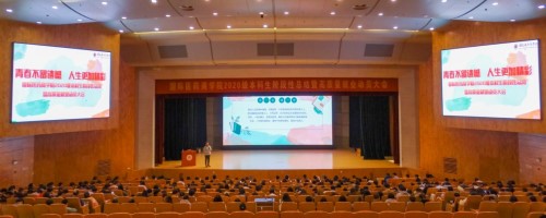 2020级本科生辅导员王锦涛首先作了题为《青春不留遗憾,人生更加精彩》的专题报告。报告回顾了2020级本科生在思想、学习、生活、心理等方面的成长历程,重点就同学们面临的学业及后续的职业选择作了详细的解读及建议。