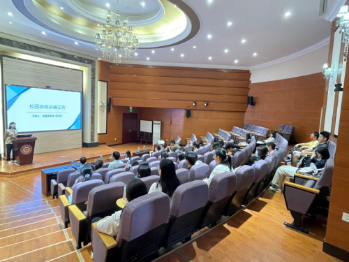 校宣传部郑诗翌老师为在场师生以《校园新闻宣传》为题同与会教师作经验分享。她从新闻稿件的撰写、报道中的注意事项、新闻编辑实务三个方面入手,结合具体的案例展开详细阐述,剖析了一篇高质量新闻稿件应具备哪些要素,并提出校园新闻具有时效性、政治性和严肃性并存的特点。通过专题学习,在场师生表示,本次学习理论丰富且实操性强,不仅有助于校园新闻写作技巧的理解,且让大家更加深刻认识到新闻宣传必须要客观、规范和注重细节。