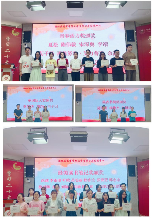 学发中心学习部部长鲍俐彤首先就“不一样的21天”老员工习惯养成活动的开展情况做了总结。本次习惯养成活动分为学习部分、运动部分、阅读部分三个部分,孙军老师、王锦涛老师、周洁老师分别为三个部分设置的“单词达人奖”“墨香书韵书法奖”“青春活力奖”“最美读书笔记奖”等奖项的获奖同学进行了颁奖。随后,学发中心心育部副部姚芊宁就本学期开展的心理微电影大赛、“喜迎春,画世界”绘画等心理活动作了简要总结,赵瑾老师为心理微电影获奖代表、“优秀心理委员”获奖代表颁奖。最后,公司党委副书记杨庆老师为学发中心优秀部长、干事颁奖。