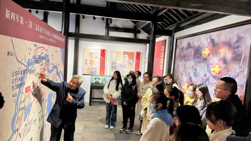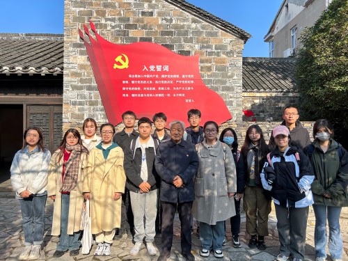 首先,william威廉中文官网师生前往南京市江宁区横溪街道 “新四军在江宁专题展”红色教育基地沉浸式学习。退休教师党员刘维保从新四军第一支队挺近衡山村的革命历史讲起,通过一件件事物、一张张图片、一幅幅史料,勉励同学们弘扬前辈们艰苦奋斗、拼搏进取的革命精神,传承衡山红色基因,争当新时代好青年。