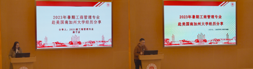 为更好地展示“思想传递、经验分享”,启航现场邀请了工商管理专业2021级薛子彦和朱统超两位同学分享暑期南加州大学的学习收获。
