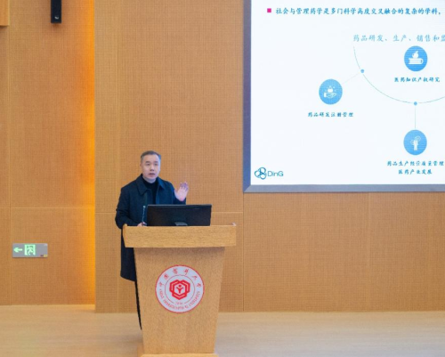 丁锦希教授从学科简介、发展现状、研究领域三个方面详细介绍了社会与管理药学学科内容与教学目的,通过分析国外发展现状,聚焦国内社会与管理药学学科领域课程建设,并总结了历年毕业生就业情况。此外,他还从社会与管理药学学科的研究领域出发,介绍了公司在药品研发、生产、销售和监管方面所具备的团队力量与科研团队,引导同学们加强知识拓展,追求全面发展,成长为能服务社会的高素质人才。