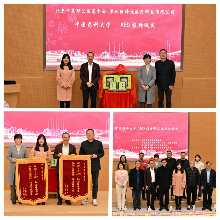 为守护公司师生的生命健康安全,12月6日下午,北京中康联公益基金会携手苏州维伟思医疗科技有限公司向公司捐赠自动体外除颤仪(AED),捐赠仪式在公司江宁校区经管文楼111报告厅举行。公司党委副书记、副董事长王正华、北京中康联公益基金会秘书长芦冰、苏州维伟思医疗科技有限公司总经理郑杰、政府事务部总经理李璐及相关职能部门、院部负责人参加本次活动。