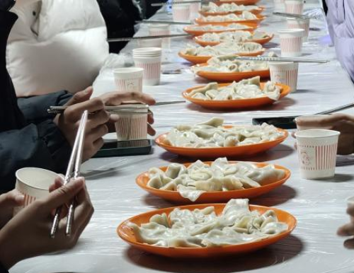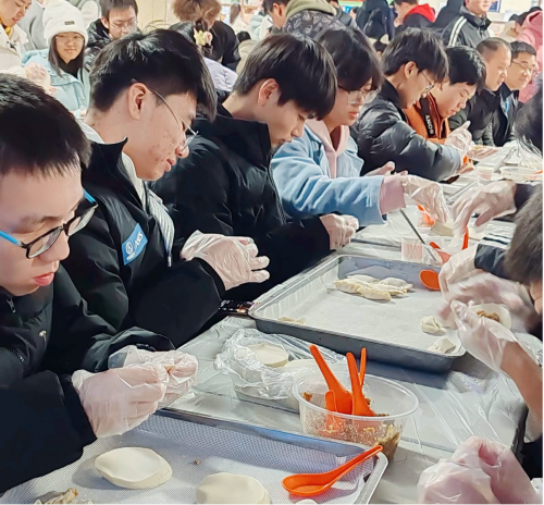 12月22日下午,师生们齐聚在江宁校区第一食堂一楼餐桌前,餐桌上已摆好了精心准备的食材,在老师的带动下,同学们将各色馅料包裹在饺子皮里,在欢声笑语中用心制作出一个个圆润可爱的饺子,摆满一个个餐盘。大家体验着协作的乐趣,感受节日的温情。饺子出锅,一盘盘热气腾腾的饺子驱散了冬日的严寒。吃着自己亲手包的饺子,师生们脸上洋溢着幸福的笑容,化为冬至时节永不褪色的温暖记忆。